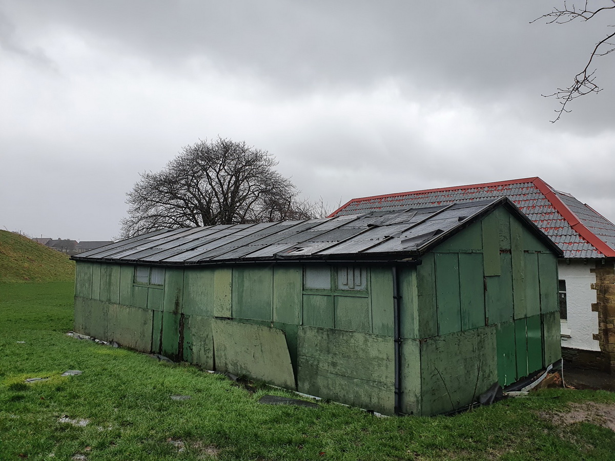 The green rugby hut, having become dangerous, was demolished.